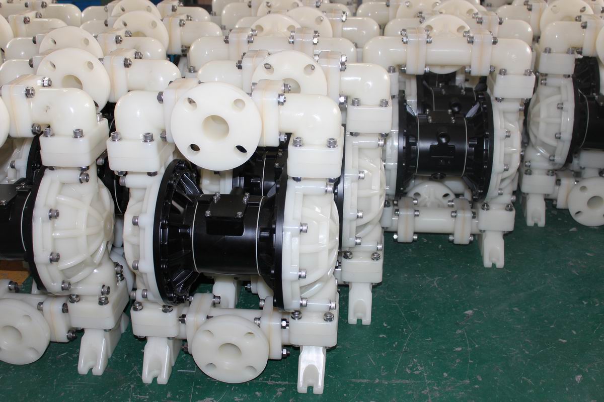 塑料隔膜泵使用方便、工作可靠、開停只需簡單地打開和關閉氣體閥門。即使由于意外情況而長時間無介質運行或突然停機泵也不會因此而損壞。一旦超負荷,泵會自地動停機,具有自我保護性能,當負荷恢復正常后,又能自動啟動運行。